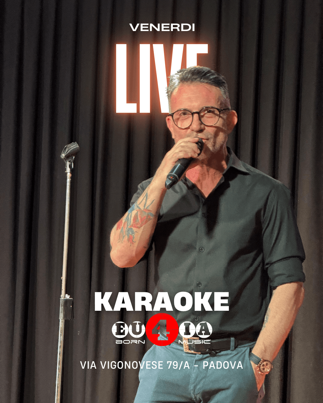 Preparati a vivere una serata esplosiva! Venerdì a Padova torna il Karaoke EU4IA, l'evento che sta facendo sold out ogni volta! Unisciti a noi per una notte di musica, risate e performance dal vivo. Dalle 22:30 in poi, il palco sarà tutto tuo! Canta le tue canzoni preferite, sfida i tuoi amici e immergiti in un'atmosfera elettrizzante.